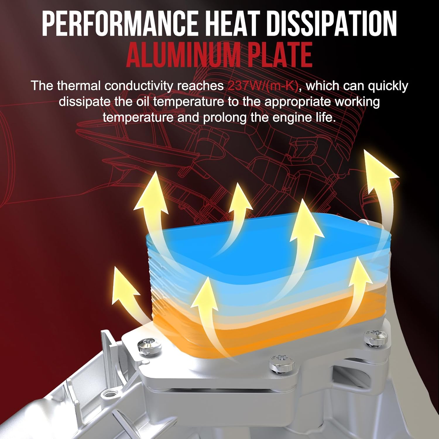 This Oil Cooler will protects the engine, prevents oil leakage, prevents corrosion, longer service life. Oil Filter Housing is made of Aluminum, it avoids the defects of fracture and oil leakage caused by the use of plastic casings in the other products, will minus your frequent replacements ——Engine Oil Cooler